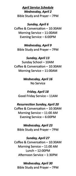 Our Weekly Worship Service changes from week to week!